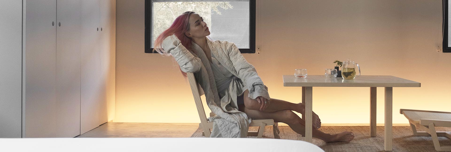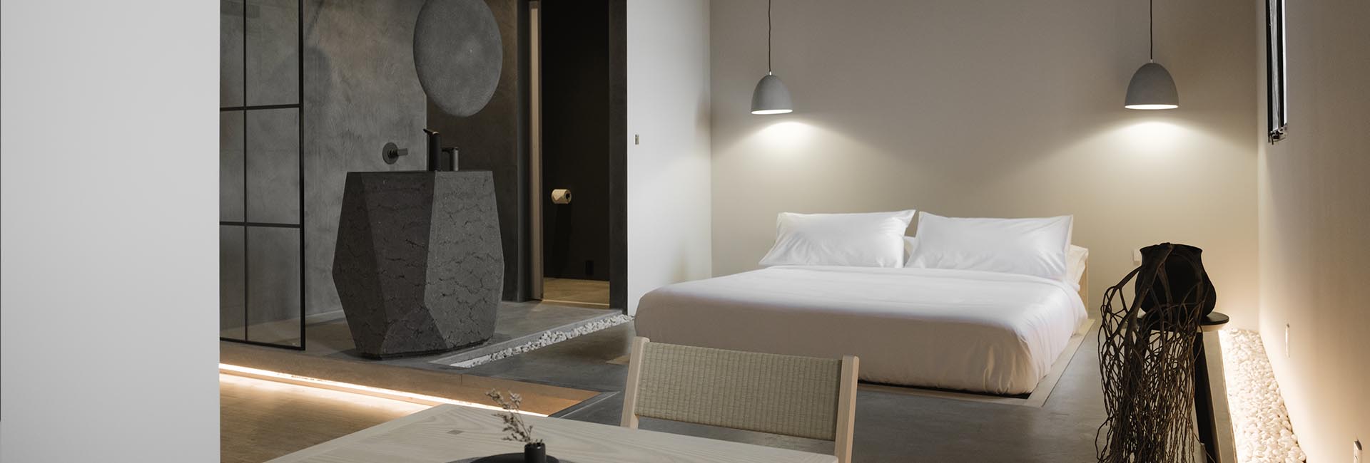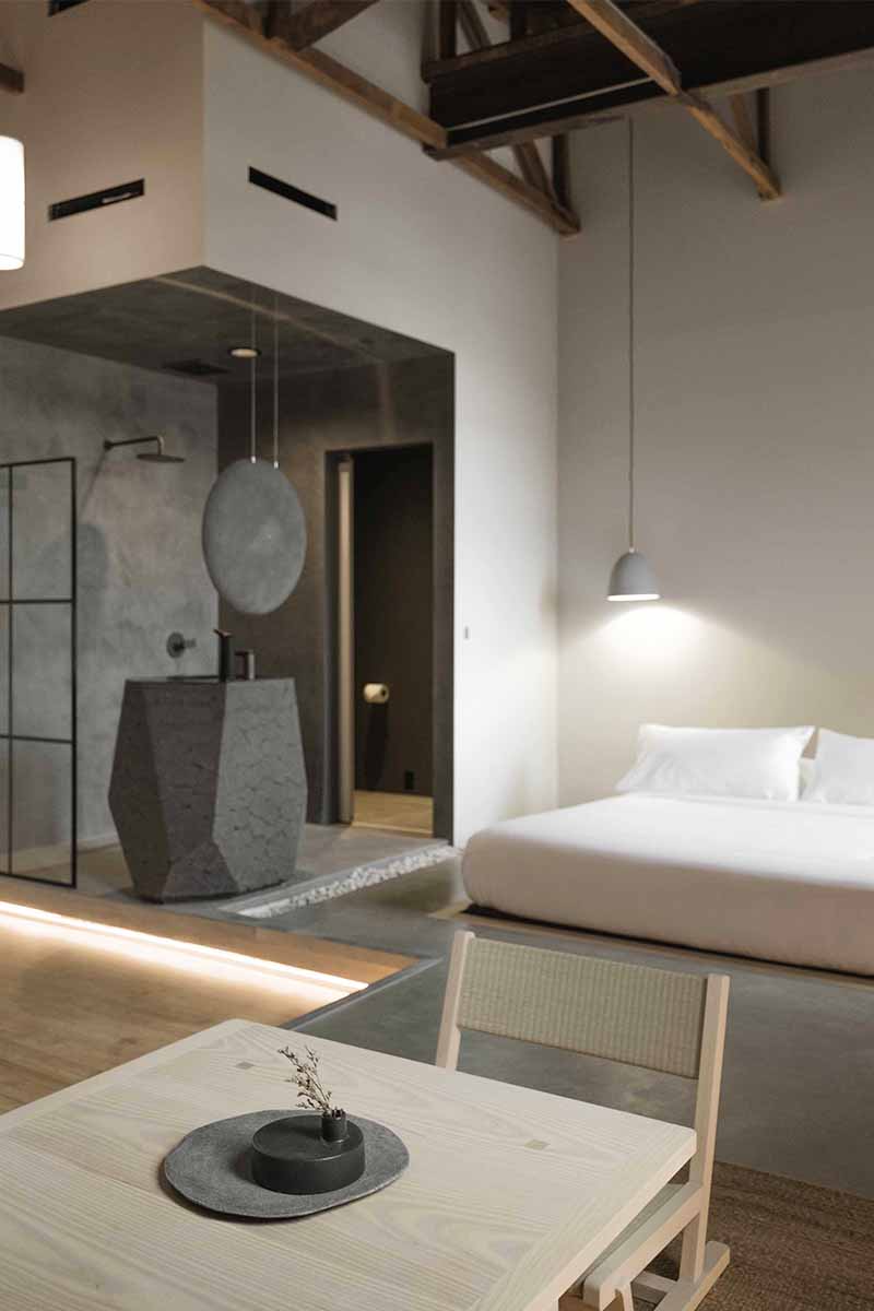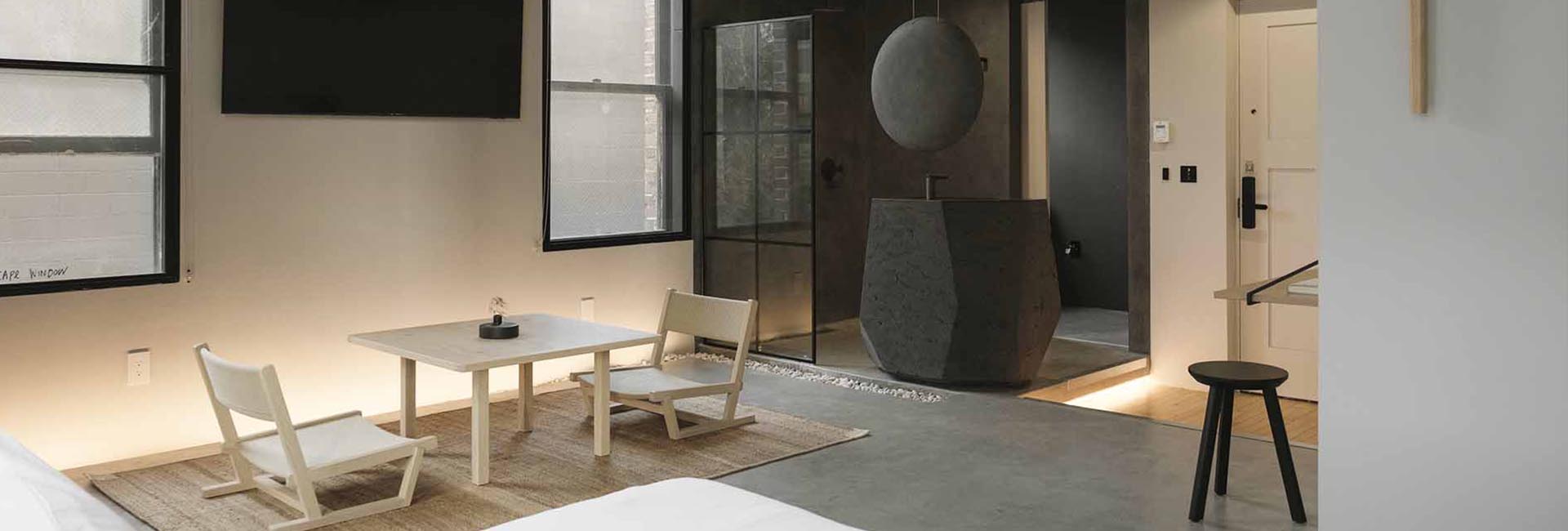 Each room features a king futon-style bed, open shower with gravel flooring, and ash wood furniture built with traditional japanese techniques.